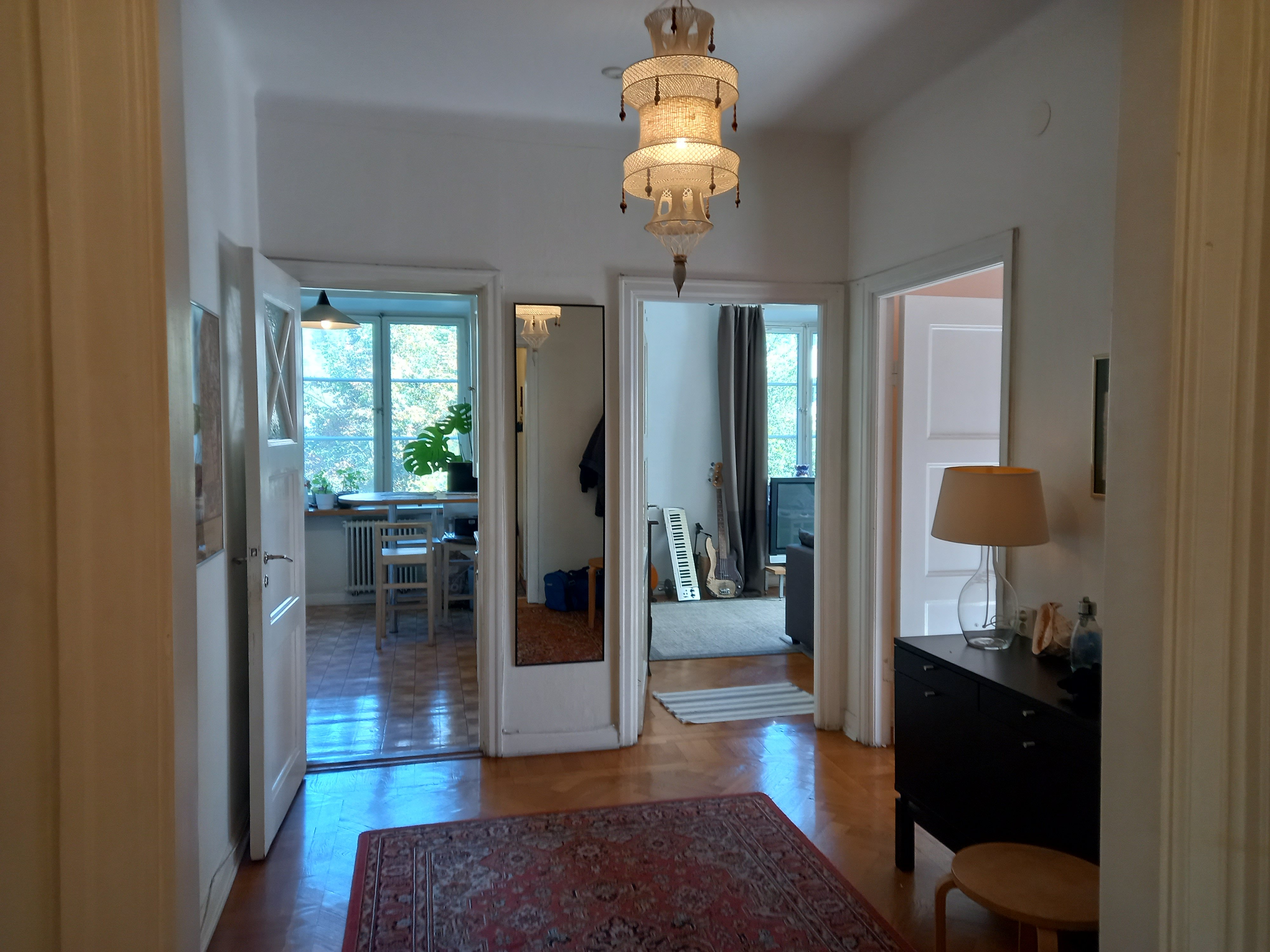Denna mysiga lägenhet är belägen på Kungsholmen ,nära Thorildsplans tunnelbana och stenkast från Rålambshovsparken. Den har 2,5 rum och kök, och det är ett av rummen som hyrs ut fullt möblerat. Bostadsrättsföreningen har en stor vacker innegård fruktträd och rymlig uteplats med grill. för mera information kontakta mig. (Jag hyr rummet i min lägenhet, av reseskal. I hyran ingår: El , vatten, internet, m,m