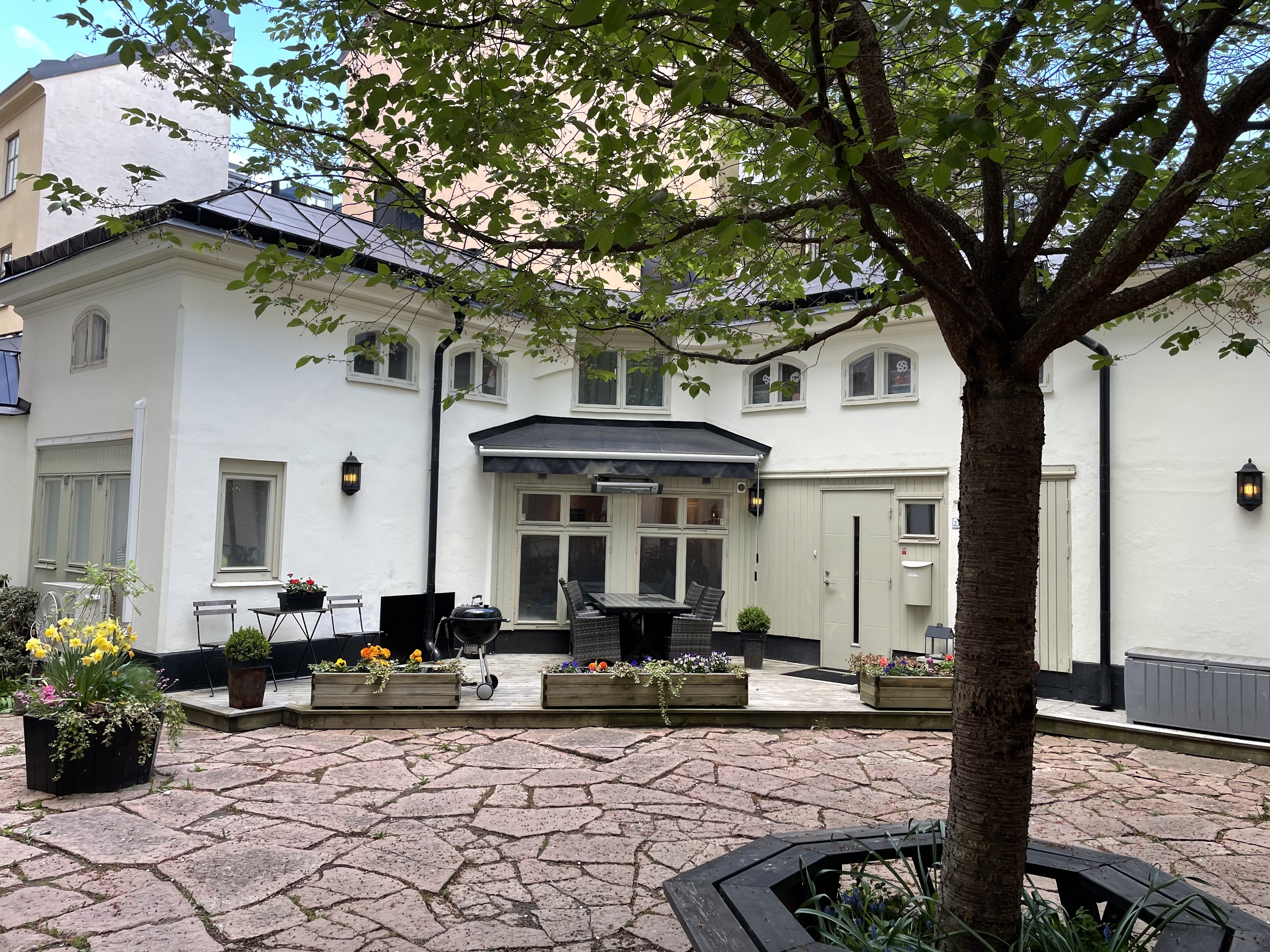 Nästan eget gårdshus i två våningar med egen uteplats mitt på Kungsholmen. Du hyr ett sovrum på nedervåningen och större delen av tiden kommer du ha hela gårdshuset för dig själv. Ägaren bor på annan ort och använder huset som övernattningslägenhet när han arbetar i Stockholm (uppskattningsvis 5-10 dagar per månad) och vissa helger. Sovrummet som hyrs ut innehåller säng, skrivbord, garderob. I hyran ingår också egen toalett för hyresgästen. Hyresgästen har också tillgång till alla gemensamma ytor: på nedervåningen kök/matplats/allrum samt tvättstuga med bastu. På övervåningen vardagsrum samt badrum med dusch och badkar. Egen uteplats med infravärme. Diskmaskin, tvättmaskin, torktumlare. Sonos i hela huset. Gårdshuset är totalt 121 kvm. Trevligt läge vid Rådhuset. Fastigheten ligger i hörnet Bergsgatan/Södra Agnegatan. Närmaste nedgång till t-banan (station Rådhuset) precis utanför porten. Jag vill gärna hitta en trevlig och pålitlig hyresgäst så skriv gärna ett par rader om dig själv. Om ägaren: man från Stockholm som bor i Helsingfors med familjen. (International tenants also welcome and feel free to write in English) I hyran ingår el och internet.