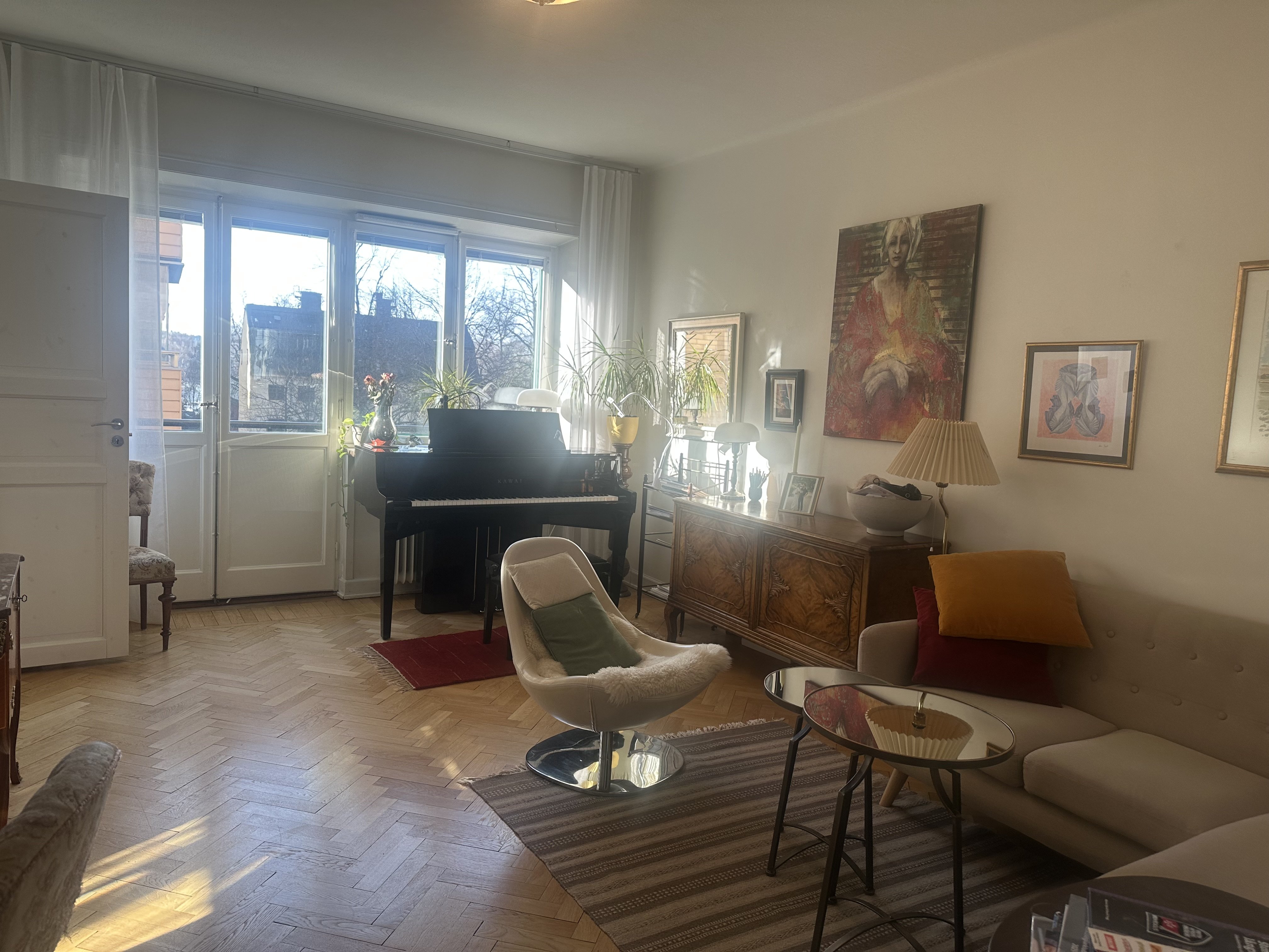 Trivsam lägenhet på Kungsholmen – nära vatten och stadsliv Jag hyr ut min lägenhet några månader när jag är utomlands och söker någon som vill bo här under tiden och ta hand om den som sin egen. Jag letar efter en lugn och skötsam person. Lägenheten ligger på Kungsholmen, nära både vatten och grönområden. Samtidigt har du allt runt hörnet – restauranger, caféer, butiker, apotek och bra kommunikationer. Det är ett väldigt smidigt område att bo i, och bil behövs inte. Lägenheten är 44 kvm och välplanerad, så den känns större än den är. Den passar bäst för en person, men kan fungera för två. Det finns ett litet sovrum med en 120 cm bred säng. Köket är öppet mot vardagsrummet, där det är fint ljusinsläpp under dagen. I hallen står en smal utdragbar säng som kan användas vid behov. Balkongen vetter mot väster och är verkligen härlig under sommarhalvåret, särskilt på eftermiddagar och kvällar. En sak som är viktig att veta: jag är pianolärare och har ett elpiano av hög kvalitet i lägenheten. Om du spelar är det ett plus. Om inte, vill jag att det får stå i fred. Lägenheten är rökfri och djurfri. Hyran är 16 000 kr/månad och inkluderar värme, vatten, el, internet och möbler. Deposition: 1 månads hyra. Skriv gärna några rader om dig själv när du hör av dig, så jag får en känsla av vem du är.